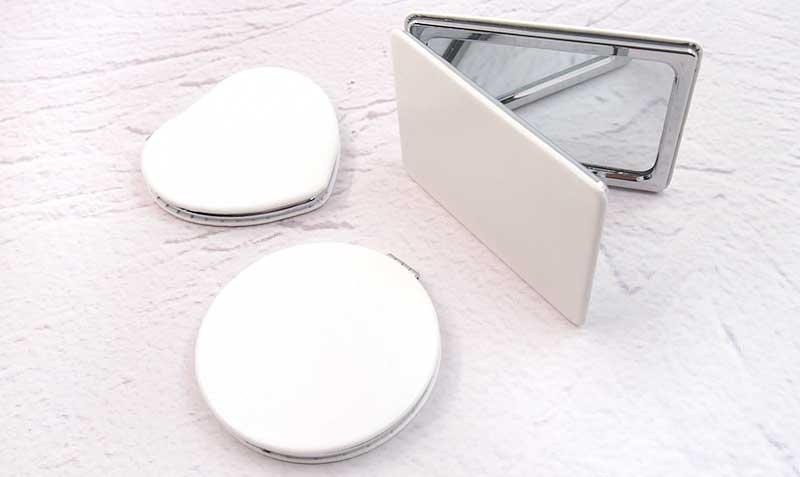 男性の方はオーソドックスな長方形、女性の方はキュートなハート型など、必ずあなたのお好みに合ったコンパクトミラーがお作りできるはずです。