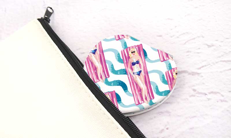 こちらのコンパクトミラーは、もっとコンパクトに携帯できる便利なオリジナルグッズを印刷&製作したい方にオススメです。
